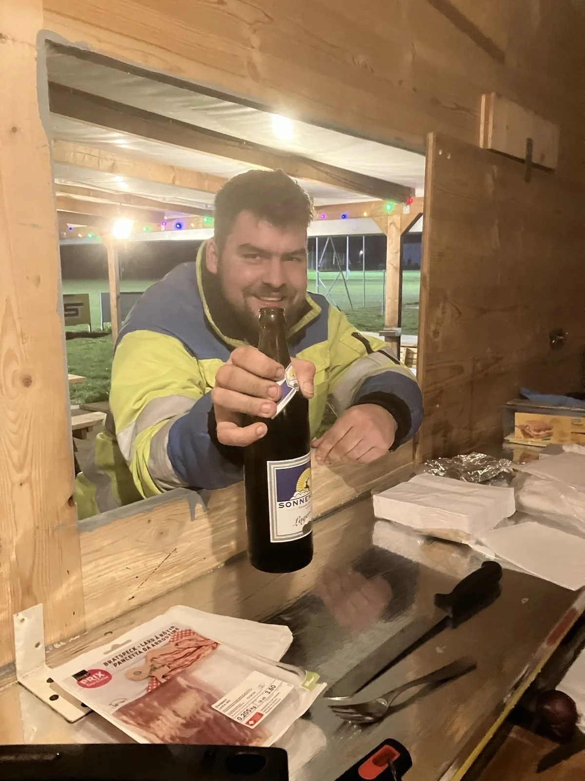 Historischer Moment: Sascha geniesst das allererste Sonnenbräu! Benni Roth spendiert es!